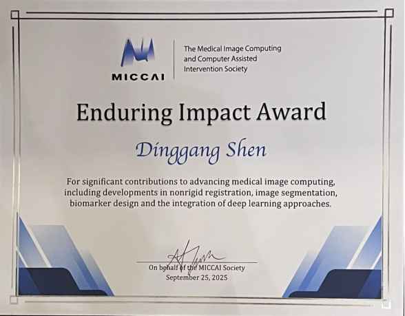 9 月 23 日至 27 日,2025年国际医学影像计算与计算机辅助介入协会(MICCAI)年会在韩国举办。期间,上海科技大学生物医学工程学院创始院长,联影智能联席 CEO 沈定刚获得大会颁发的 MICCAI Enduring Impact Award (EIA) 持久影响力奖, 成为该奖项设立 17 年来首位华人学者。