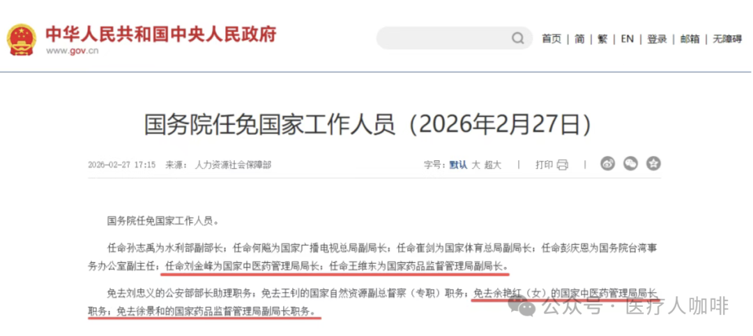 2026年2月27日,国务院发布任免国家工作人员公告: