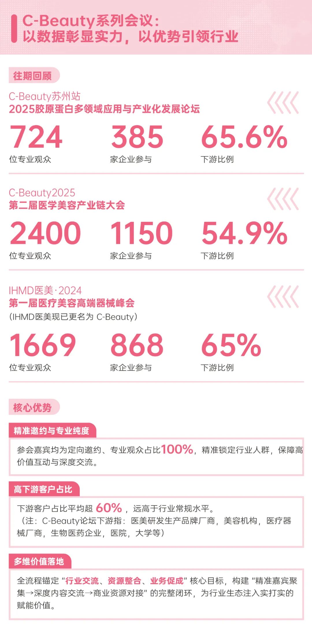 第三届C-Beauty“医美智造与工艺创新”专场,我们将从技术源头到产业化落地,全方位探讨医美智造的现在与未来,旨在搭建医美生产端技术交流、资源对接的核心平台。无论您是医美企业生产负责人、供应链、采购负责人,还是关注行业智造升级的投资者,都能在此获取前沿技术趋势、实战解决方案与优质合作资源,沟通推动医美行业向“高质量、高效率、可持续”方向迈进!