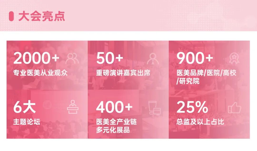 本次大会 “以科技创新赋能美” 为主题,锚定医美行业高质量发展方向,深度围绕注射医美、再生材料、医美智造三大赛道,直击行业核心需求,汇聚超2000位医美从业者共赴盛会,聚焦注射与再生医美的创新研发,生产工艺,监管合规,临床应用等关键议题。此外,还有来自新型医美材料、智能化制造设备、品牌运营推广等八大细分领域的展商,携超400件展品惊艳亮相,全方位呈现行业创新成果,助您一站式解锁前沿技术与产品。