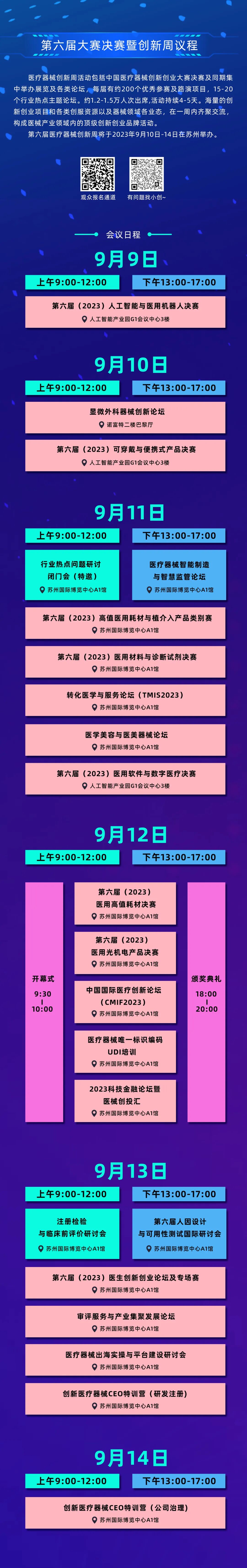 除上述一赛一展外,医疗器械创新周还专门配套15个主、分论坛,内容涉及医疗器械最新技术、医疗器械创新设计及代工、动物和临床实验、医学成果转化、资本对接及医疗器械出海等医械生态圈各环节。详细论坛日程将于近期逐一公示,敬请关注。