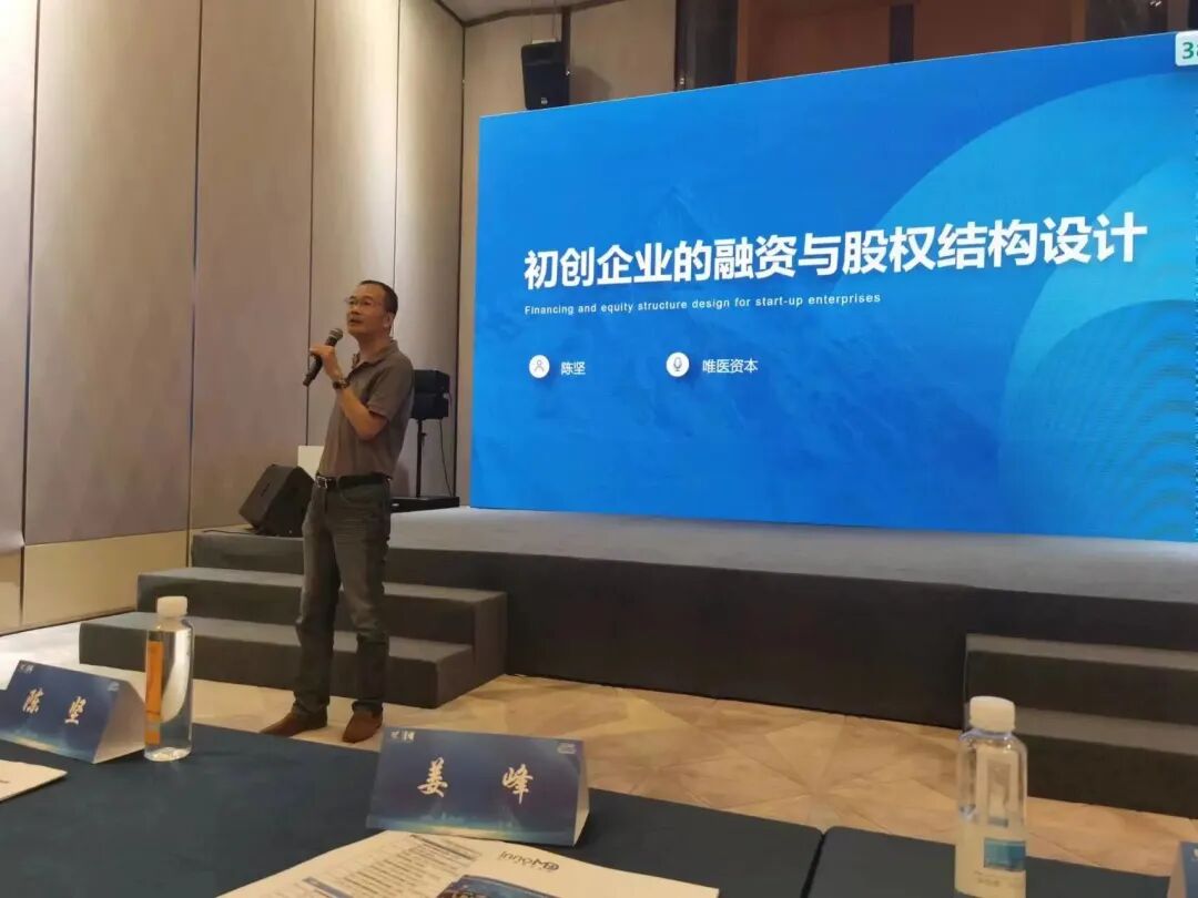 鱼跃集团常务副总裁、深交所授课导师、唯医创投合伙人陈坚以“初创企业的融资与股权设计”为题作出了分享。陈坚老师对医疗器械企业融资等方面进行了全面细致的讲解,并分享了部分医疗器械企业融资的真实案例,就当前资本市场环境下如何开展融资提出了建议。